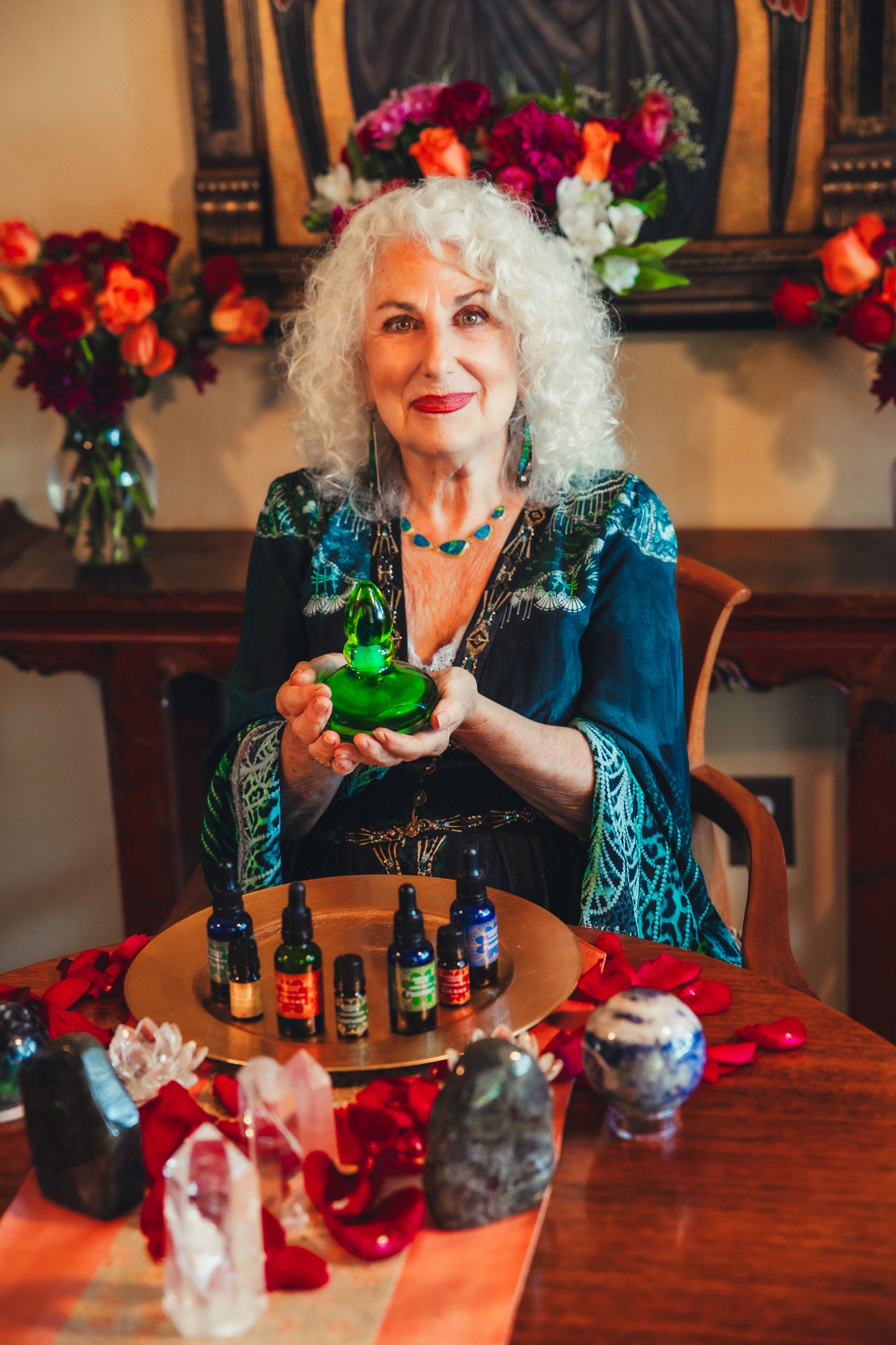 Through the Emerald Temple, I teach the art of anointing and share the profound mysteries of these oils. They are more than fragrances; they are living prayers guiding those who use them to their own inner sanctuaries of wisdom and love.